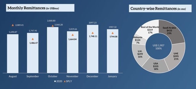 Alone in January, the remittances increased by 9.36 percent to $1,907.32 million as compared to 4.92 percent ($1,744.08 billion) in January FY19, the report added.